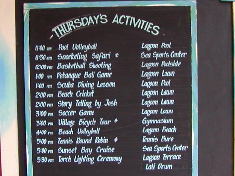 新婚旅行で有名なシャングリア・フィジアン・ホテルの木曜日のプログラム。