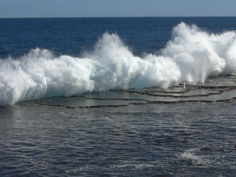 ホウマ村の海岸にある最大18m水柱を吹き上げる潮吹き穴。
