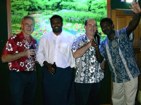パーティの2次会のカラオケで盛り上がるプロジェクト関係者。